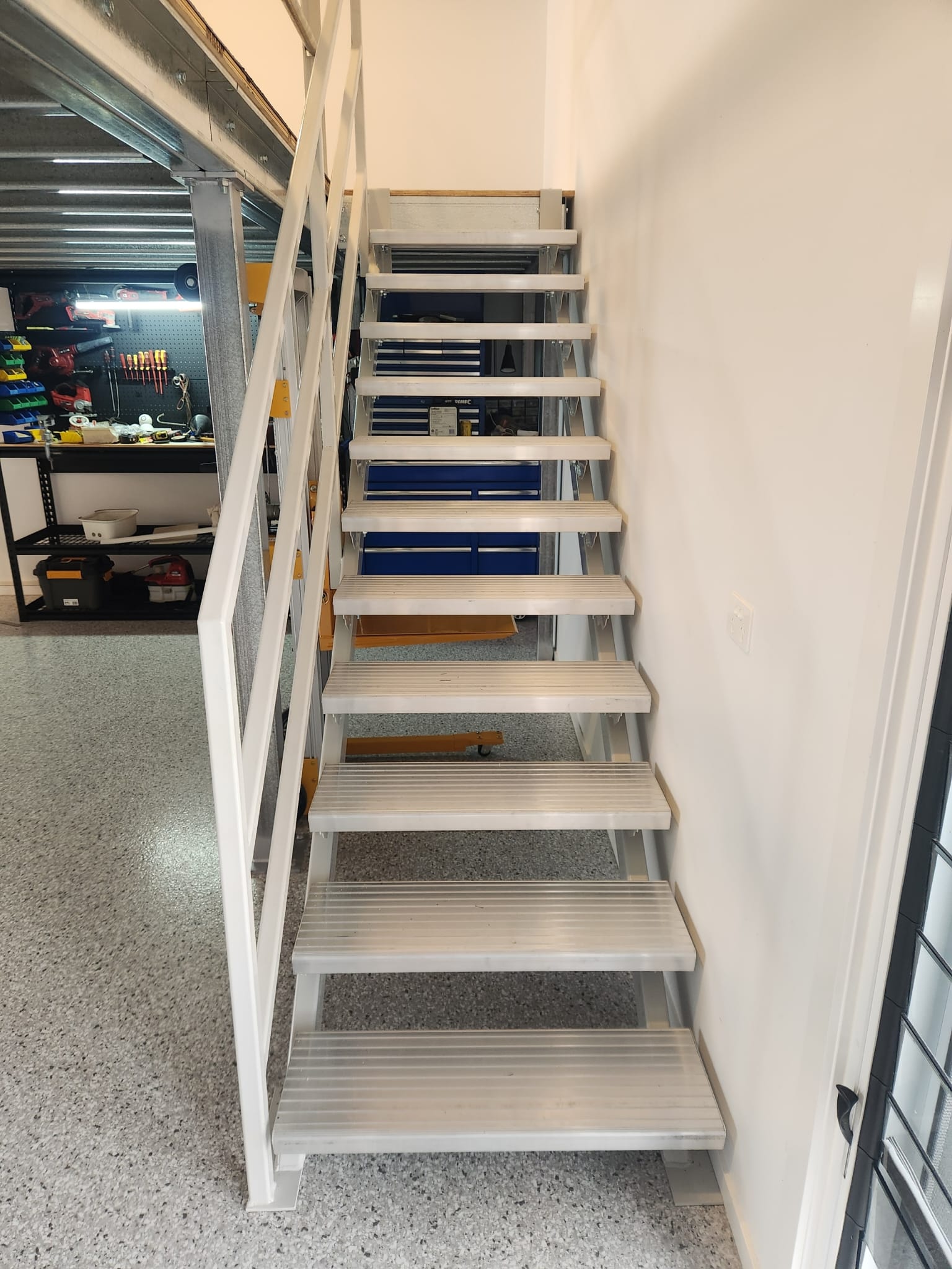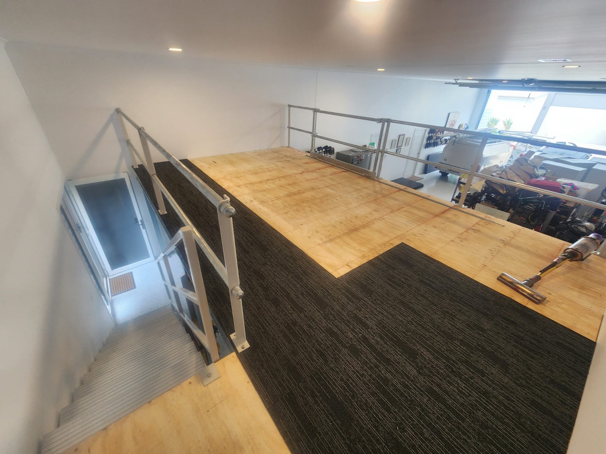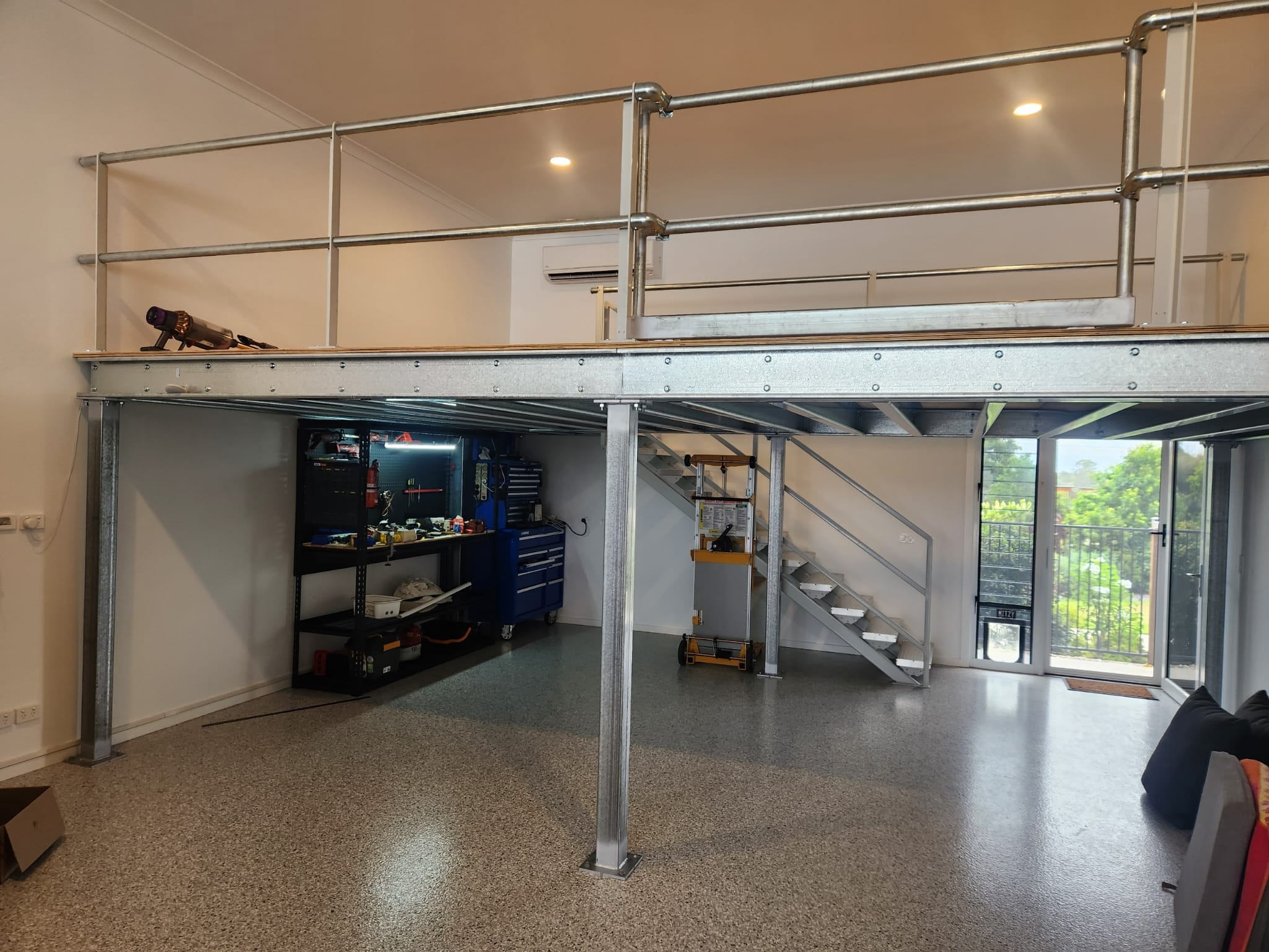 Teaming up once again with our trusted local builder Rick Arnold, we recently completed a 25sqm mezzanine floor that’s as practical as it is good-looking. Designed to a solid 3kPa load rating and built with durable 21mm plywood, this mezzanine is made to last.
