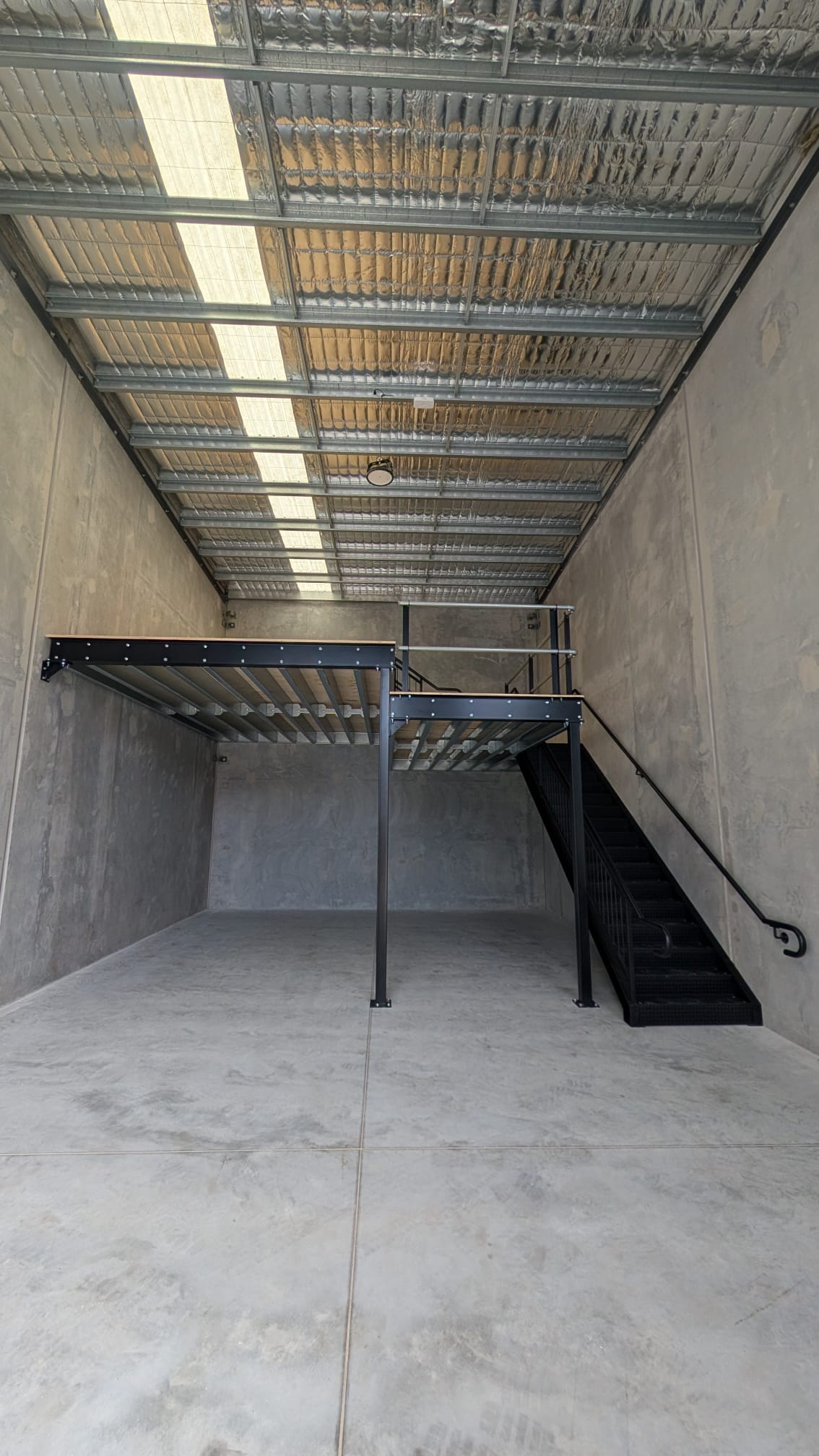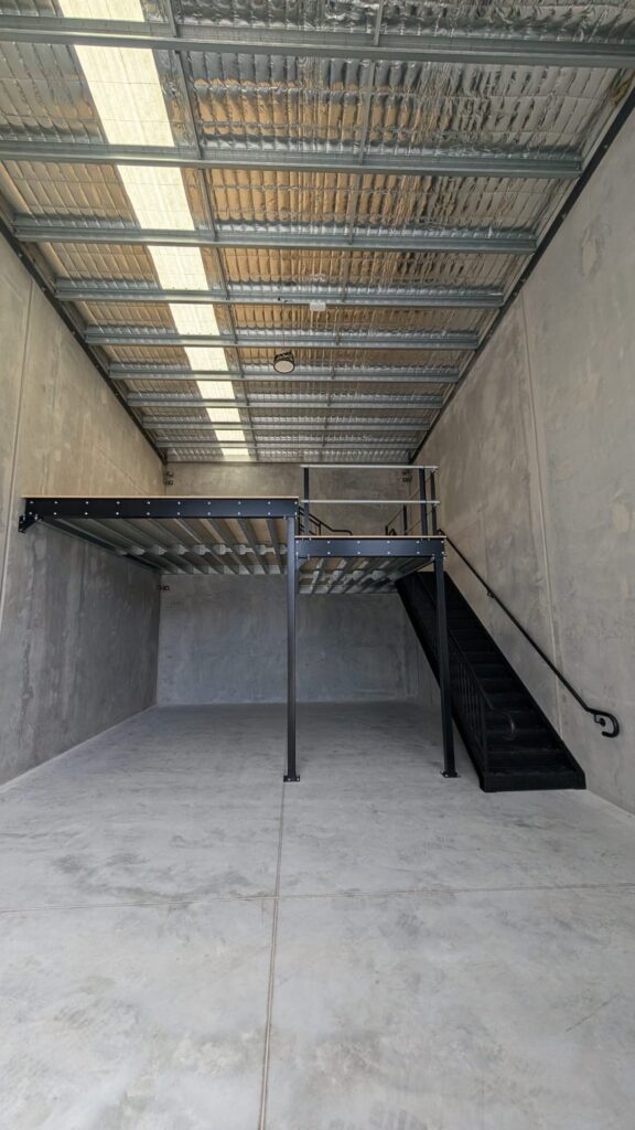 Our recent project in Pinkenba was to create a storage and office solution for a warehouse. The client wanted create a space that housed his caravan, he could build an office on and included an area for storage. His request was to have a two level Mezzanine so that the extra height was in one section for the caravan to fit under, the other area a little lower for storage.