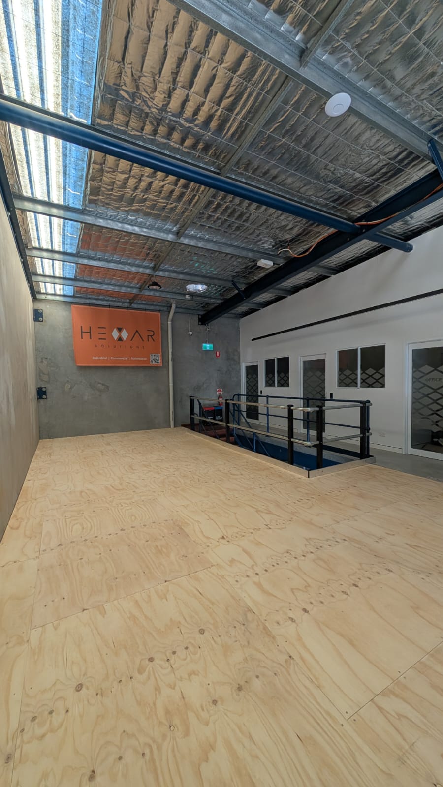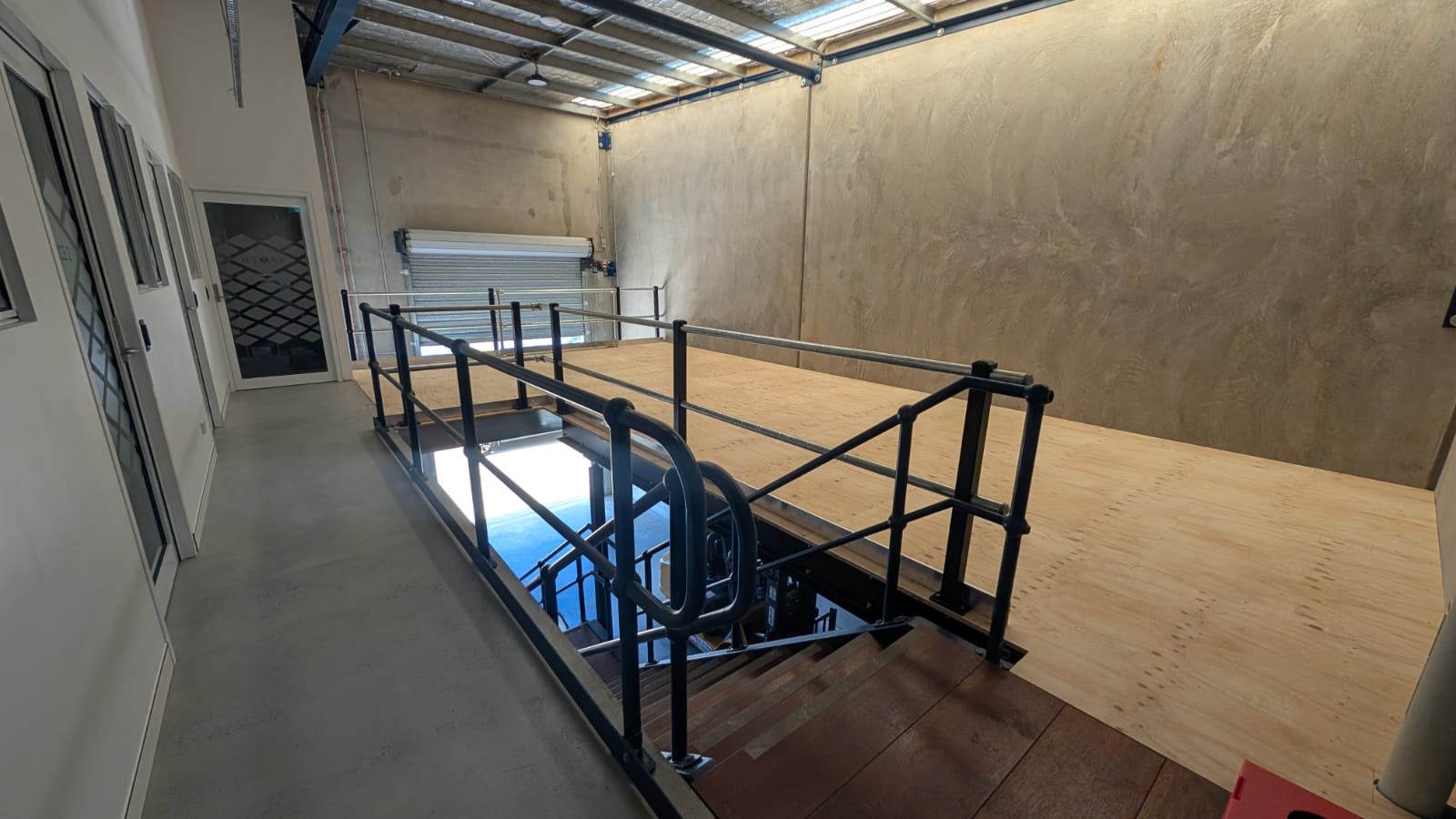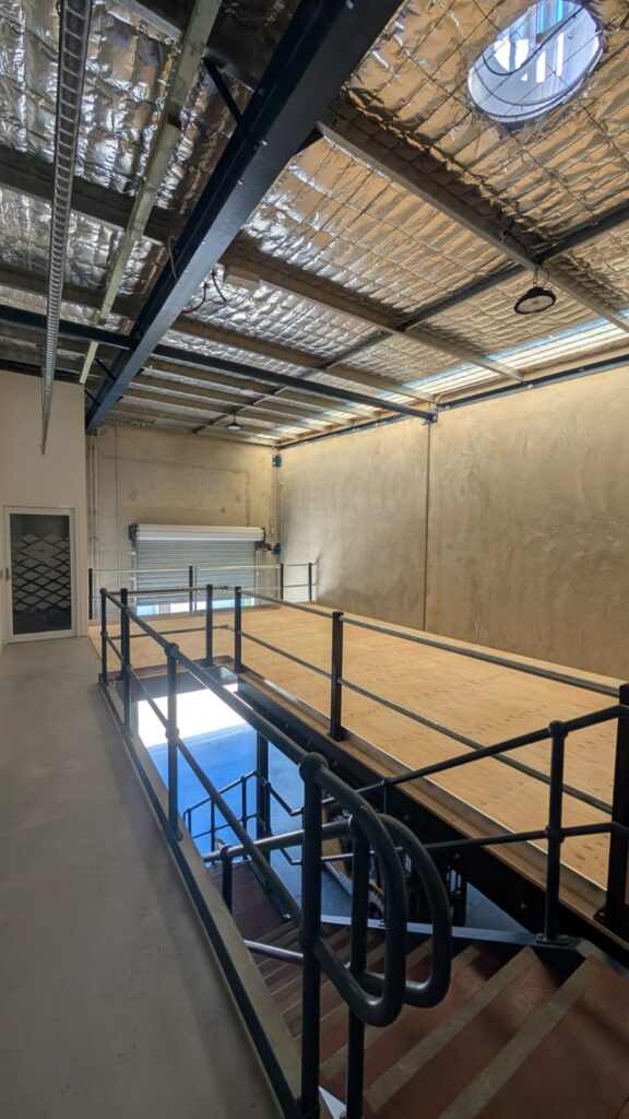 This recent job in Yarrabilba required an extension of an existing Mezzanine floor. The client wanted to be able to access the Mezzanine from the upstairs office and incorporate the existing stair case also.